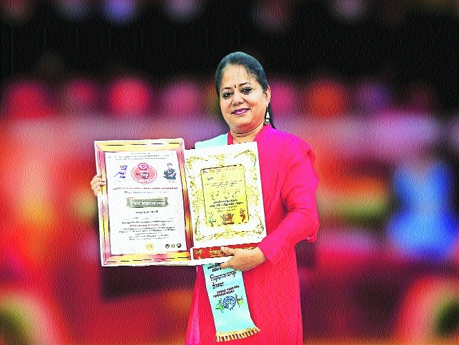 Kathak artist Pallavi Upadro Kshirsagar with the ‘Nritya Kalakriti’ award and the ‘Best Choreography’ award at the Bharat Mahotsav 2024,