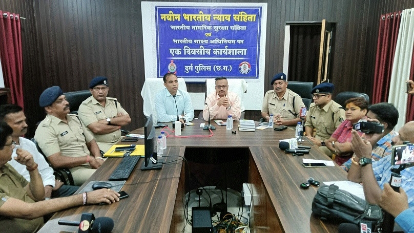 Following the directives received from the Police Headquarters, Nava Raipur, Durg Police on Thursday organised a daylong workshop on new criminal laws for journalists. The workshop aimed at providing necessary information to the journalists on Bharatiya Nyay Sanhita, Bharatiya Nagrik Suraksha Sanhita and Bharatiya Sakshya Adhiniyam implemented from July 1st so that the journalists can provide accurate and detailed information to their readers and viewers.