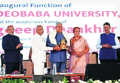 “Quality of education defines democracy and development. It fast-tracks our journey towards achieving the goal of making India a fully developed nation by 2047. There was a time when people used to call India a sleeping giant. India is no longer a sleeping giant. It is on the rise, the rise is unstoppable. The rise is continuous. The economic upsurge is exponential,” said Jagdeep Dhankhar, Vice-President of India. Dhankhar was speaking at the inauguration of the Digital Tower of Ramdeobaba University (RBU) here on Sunday. Dr Sudesh Dhankhar; C P Radhakrishnan, Governor of Maharashtra; Banwarilal Purohit, former Governor of Punjab and former Administrator of Chandigarh, and Founder and Chairman Emeritus of Shri Ramdeobaba Sarvajanik Samiti (SRSS) that runs RBU; Devendra Fadnavis, Deputy Chief Minister of Maharashtra; Satyanarayan Nuwal, Chairman of SRSS; Rajendra Purohit, General Secretary of SRSS; Dr S S Mantha, Chancellor of RBU; Dr Rajesh Pande, Vice-Chancellor of RBU, shared the dais on this occasion.