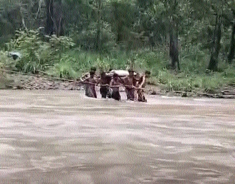 after consuming a poisonous substance. Her husband, Kosa Podiyami, urgently sought help from the villagers, knowing well that any delay in reaching a hospital could be fatal. But in a region where roads are non-existent and rivers become impassable during the monsoon, calling an ambulance was out of the question. Instead, the villagers tied Jogi to a cot and, with the help of ropes, managed to cross the raging river—a lifeline and a death trap rolled into one.