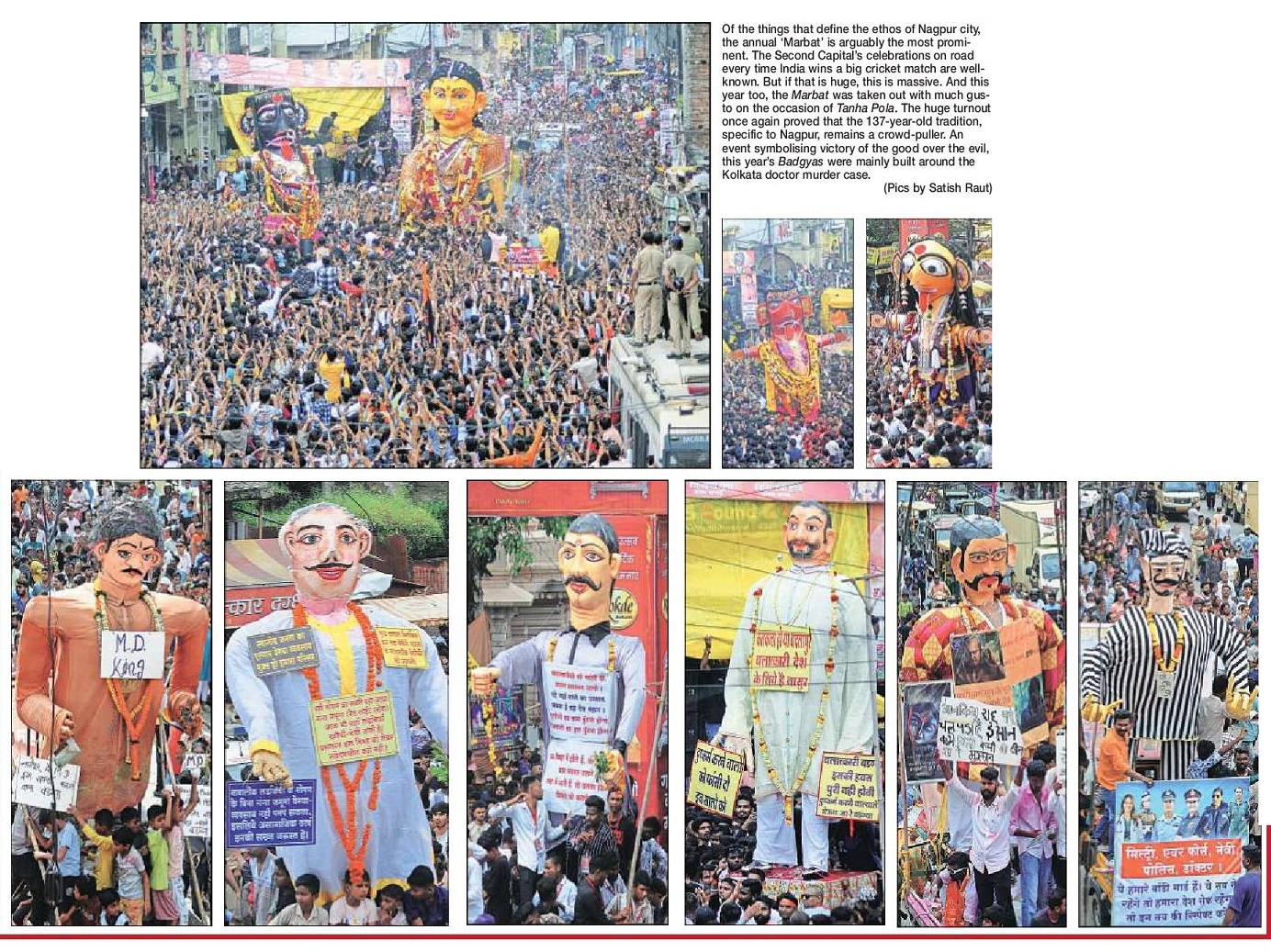 Kolkata Hospital incident that created furore in the country was the dominant theme at the Marbat festival. The traditional festival on second day of Pola festivities sees social organisation taking out Marbat, Pili and Kali. The festival is also commentary on social evils and this year incidents of rape, one that in Kolkata, and other one in Badlapur in Thane district, were highlighted.