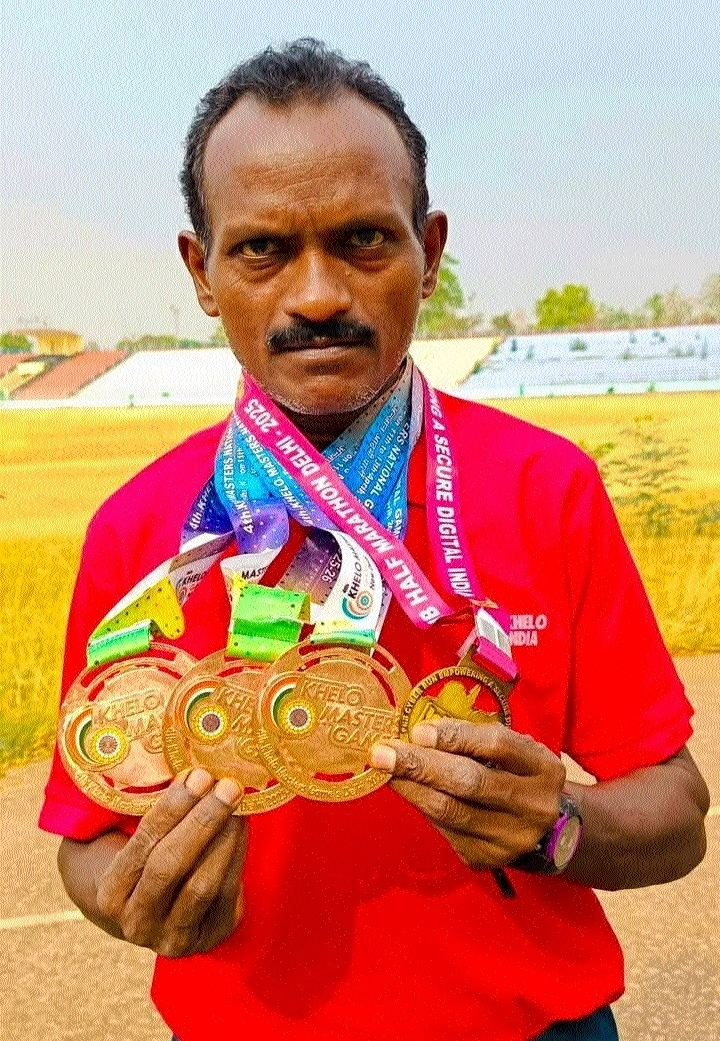 Chhattisgarh’s celebrated marathon runner Bhagwat Ram Netam, fondly hailed as Bhilai’s ‘Milkha Singh’, has once again brought immense pride to the region by securing multiple medals in two prestigious marathon events recently held in New Delhi. His latest achievements reaffirm his stature as one of the foremost master athletes in the country and underscore the sporting excellence nurtured by SAIL-Bhilai Steel Plant. Bhagwat Ram Netam won a Gold medal in the 51 to 60-year age group category at the PNB Half Marathon Delhi 2025, conducted at Jawaharlal Nehru Stadium, New Delhi. The event was organized to commemorate the Foundation Day of Punjab National Bank and aimed at promoting physical fitness, national unity, and digital empowerment. Competing against seasoned veterans, Bhagwat Ram emerged at the top of his category. Adding further to his triumphs Bhagwat Ram participated in the 4th edition of the Khelo Masters National Games, held in New Delhi, organized by the Khelo Masters Games Foundation, the national-level event celebrated fitness, discipline, and sportsmanship among master athletes, especially those in middle age and beyond.
