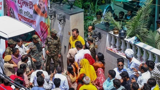As the news about the ED raids broke, supporters of Khachariyawas gathered outside his residence and raised slogans.