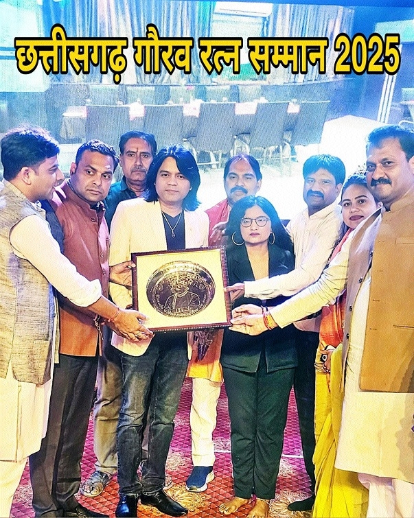 Renwoned singer, musician and actor Nitin Dubey was honoured with “Chhattisgarh Gaurav Ratna Samman 2025” for his valuable contributions in the Chhattisgarh film industry and music world in a function held at Janjgir-Champa district on Tuesday. Nitin Dubey was given this award in the felicitation ceremony organized by Janjgir Police and Ishika Life Foundation in Janjgir Champa district. Multi-talented singer Nitin Dubey has made Chhattisgarh’s name famous in the country and the world. He has done more than 2500 stage shows in different states of the country so far and has sung hundreds of super-hit Chhattisgarhi songs.