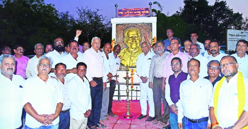 Banwarilal Purohit, Pradip Choubey, Abdul Qadir, Harish Deshmukh and others present during the unveiling of mural of late Umesh Choubey on Thursday. (Pic by Satish Raut)
