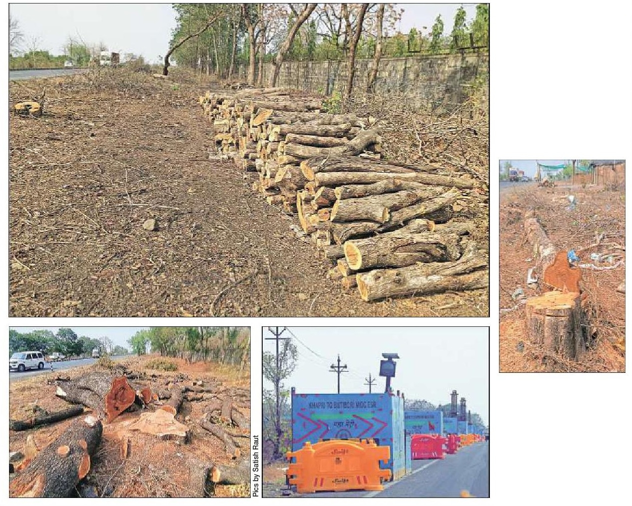 Nothing could be more unfortunate than this. Do the so-called ‘due permissions’ offer compensation for a full-grown old tree’s worth in terms of good it did to humans and other living beings for years? Also, do the ‘due permissions’ guarantee filling up the void created due to sawing of years-old trees instantly? Being ‘The People’s Paper’, ‘The Hitavada’ visited the stretch along Nagpur-Butibori road in scorching summer heat and saw the destruction being caused in the name of development. In the five-km stretch between Dongargaon-Bothli-Mohgaon, trees bearing numbers beyond 200 have been removed from existence. Right from the area along the compound of a restricted facility, to what once offered a green relief to eyes dried up because of summer heat, one can see only stumps of trees. At some places, one can see people from nearby villages collecting small sawn pieces of trees, to be used as firewood. At one place, the cut logs have been arranged in such a fashion that the spot looks like a mini timber depot. At some other places, one can see big pieces lying scattered.