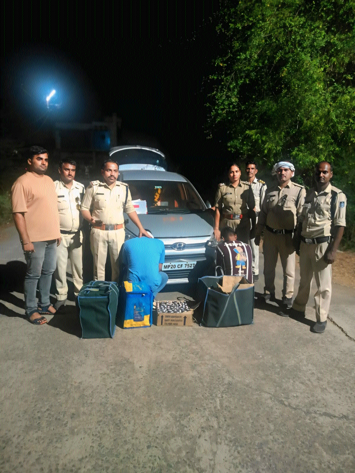 Gohalpur police nabbed two youths involved in illegal trade and transportation of liquor and seized 153 bottles of English liquor, 50 pouches of country liquor, 2 mobile phones and an i10 car from them. Arrested have been identified as Deepak Rajak (27), resident of Dumna Road, Sainik Society near Maruti Hotel in Khamaria and Aditya Sahu (21), resident of Siddhbaba Sahu Mohalla in Ghamapur. SHO of Gohalpur Police Station, Pratiksha Marko informed that police received information about two boys, aged around 22–25 years, were transporting