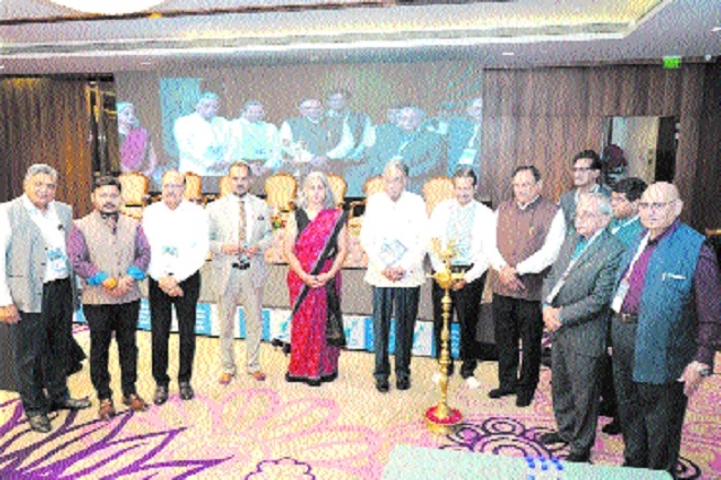 Dr T G Sitharam, Chairman of AICTE; Saba Karim, India Head for Public Sector at LinkedIn; Dr M R Jayaram, President of EPSI & Chancellor of Ramaiah University and other dignitaries during the National Conference convened by India (EPSI) at Hotel Radisson.