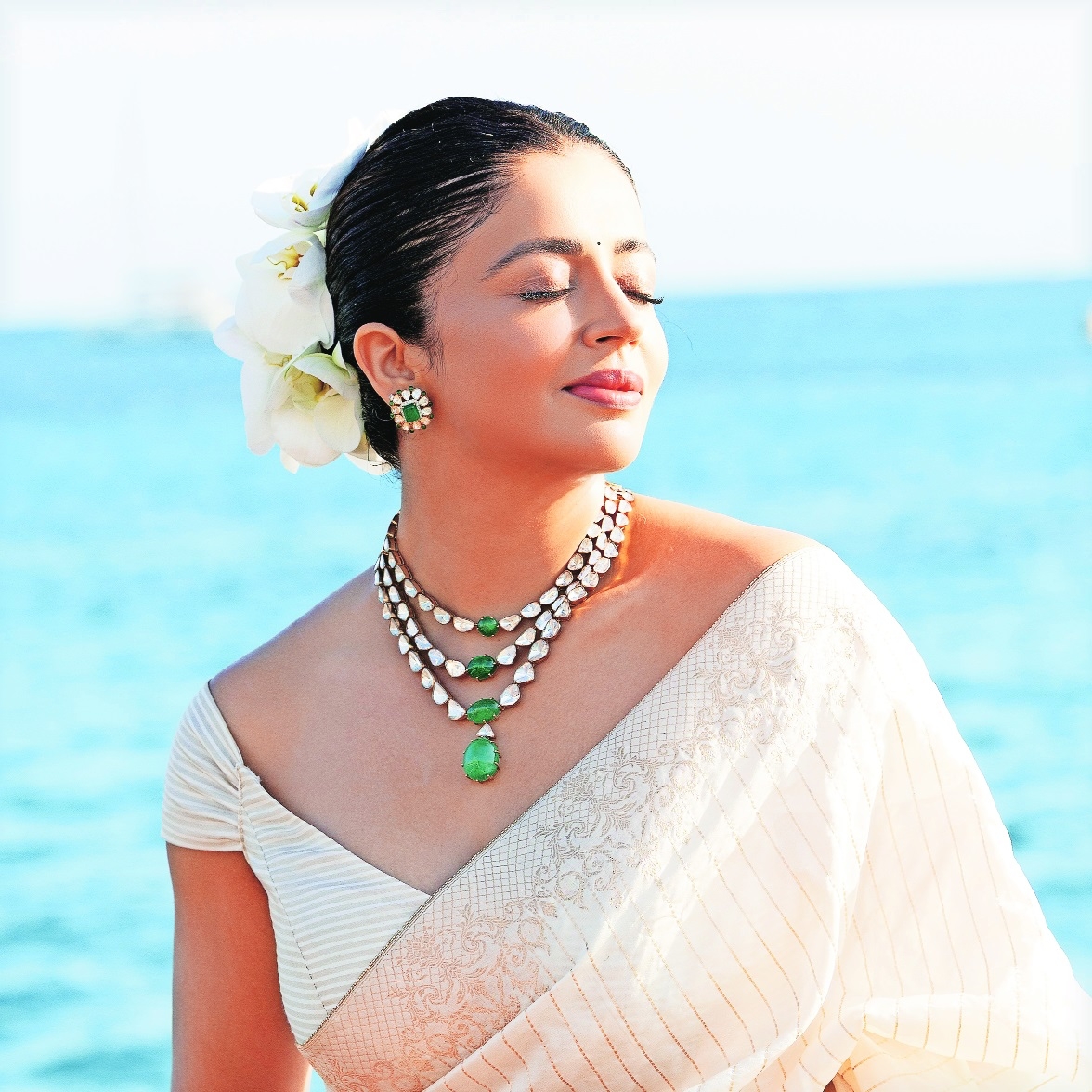 These special polki and emerald jewellery sets worn by Neha Pendse are now available at select Waman Hari Pethe Jewellers showrooms in India.