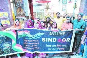 Dressed in ‘Sindoori’ sarees, they marked the occasion by applying Sindoor on each other, distributing sweets and raising slogans “Narendra Modi Zindabad” and “Bharatiya Sena Zindabad.” Led by Mandal President Rakesh Kukreja, the women played with 21 kilograms of Sindoor, filling the air with chants of “Bharat Mata Ki Jai” to honour the Indian Armed Forces’ resolve. Priest Pandit Vijay Vajpayee distributed sweets, while local residents and traders joined in, holding posters and raising slogans against Pakistan. The event saw enthusiastic participation from Bhagwan Das Dhalia, Adarsh Chawaria, Komal Chawaria, Deepa Chawaria, and Ranjan Chauhan, reflecting the community’s pride in the operation’s success.