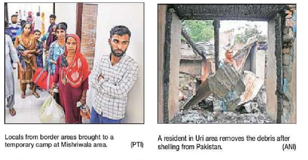 “On the intervening night of May 7 and 8, Pakistan Army resorted to unprovoked firing using small arms and artillery guns across the LoC in areas opposite Kupwara, Baramulla, Uri and Akhnoor sectors in J&K. The Indian Army responded proportionately,” a defence spokesman said in Jammu. The officials said there was no report of any casualties in the skirmishes. The worst-hit Poonch sector in Jammu, which recorded 13 deaths in Wednesday’s intense shelling, remained by and large peaceful at night, they said. Hundreds of border residents have already moved to safer areas in view of the flare up. Among the 13 persons killed in the Pakistani shelling was Lance Naik Dinesh Kumar of the 5-Field Regiment.