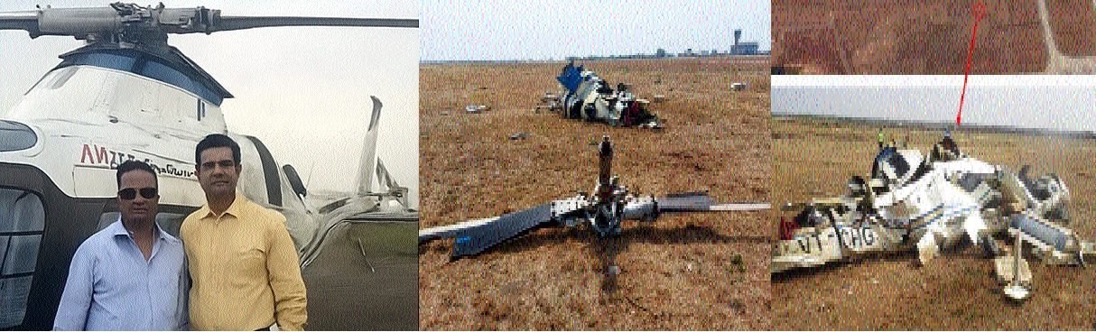 Capt. Gopal Krishna Panda and Capt. A P Srivastava, both perished in the Agusta A109E crash at Raipur. Crashed helicopter’s tail rotor found 26 metres away – pointing to violent mechanical disintegration mid-air. FINAL POSITION: VT-CHG Agusta A109 lies mangled just off the Raipur runway, marking the end of a flight riddled with oversight.