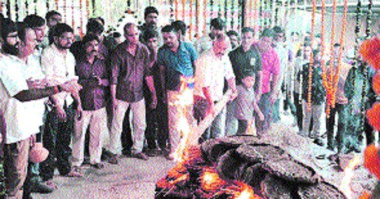 Family members performing last rites of Raja Raghuvanshi, who was killed under mysterious circumstances in Shillong, in Bhopal.