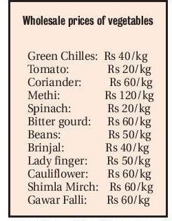 The prices of methi have gone through the roof and are being quoted at Rs 100 to Rs 120 per kg, coriander at Rs 80 per kg, gawar falli at Rs 60 per kg and bhedi at Rs 50 per kg, in the wholesale market. In the retail market, exorbitant prices of green vegetables has burned a hole in pockets of the citizens, he said.