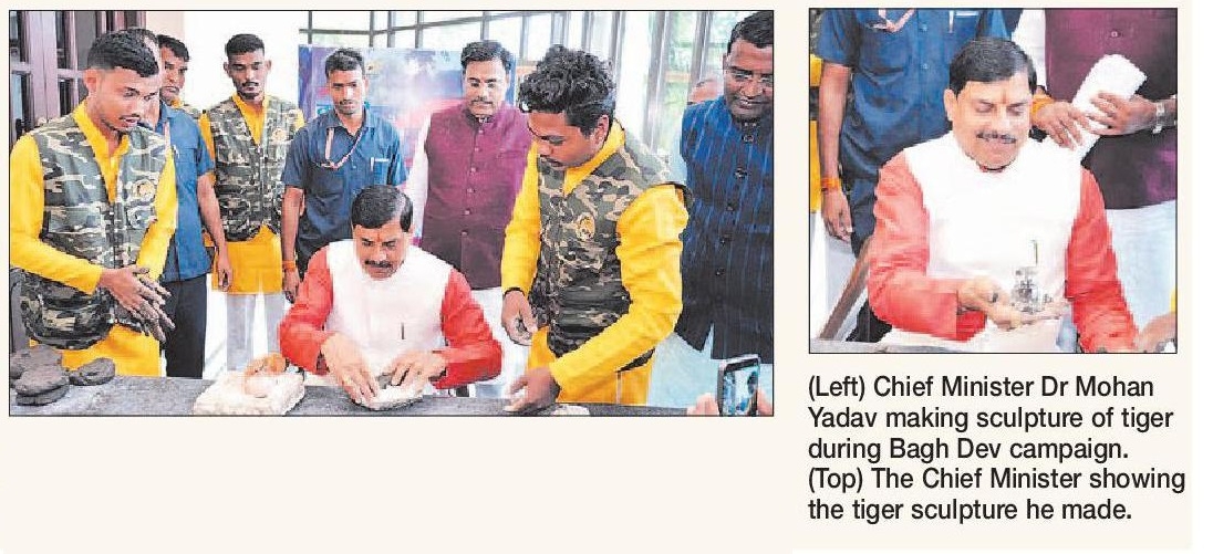 Madhya Pradesh Chief Minister Dr Mohan Yadav took part in the ‘Bagh Dev’ campaign by sculpting a tiger idol as a symbolic gesture of reverence towards wildlife conservation. On the occasion, the Chief Minister offered prayers to Bagh Dev (Tiger God), seeking prosperity and well-being for the State.