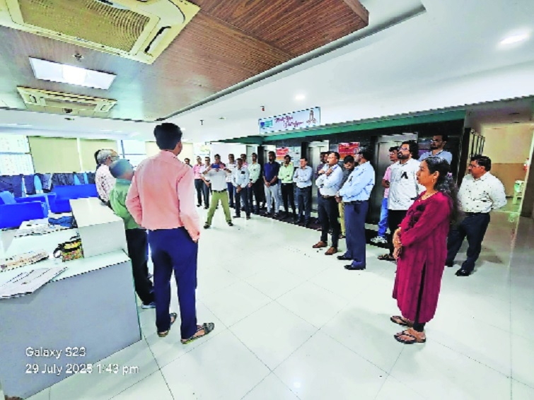 Chandrakant Deshpande, Prajwalit Satpute, Rohit Shivhare, Prasad Pokle and Yogesh Junghare took efforts for the success of demonstration in the city. The aggrieved employees demanded wages on the lines of Life Insurance Corporation of India (LIC), uniform family pension of 30% and employers contribution of 14% to National Pension System (NPS). Inspite of heavy rain large number of PSGI employees participated in the dharna. Also, ‘Aam Aadmi Party’ MP Sanjay Singh and AITUC General Secretary Amarjeet Kaur visited the dharna and extended their support to the agitations of PSGI employees. To extend solidarity PSGI employees all over the country wore black badges and held demonstrations at all the centres.