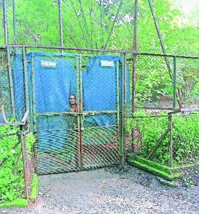 The mentally ill man inside the tiger enclosure in Maharajbag zoo. (Pic by Anil Futane)